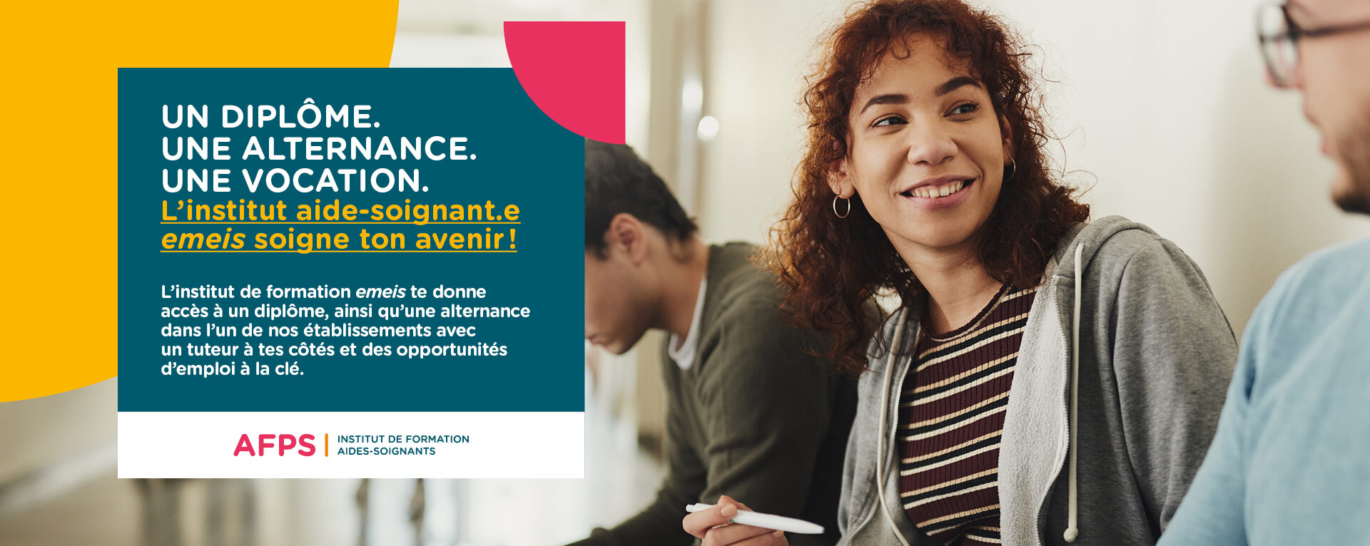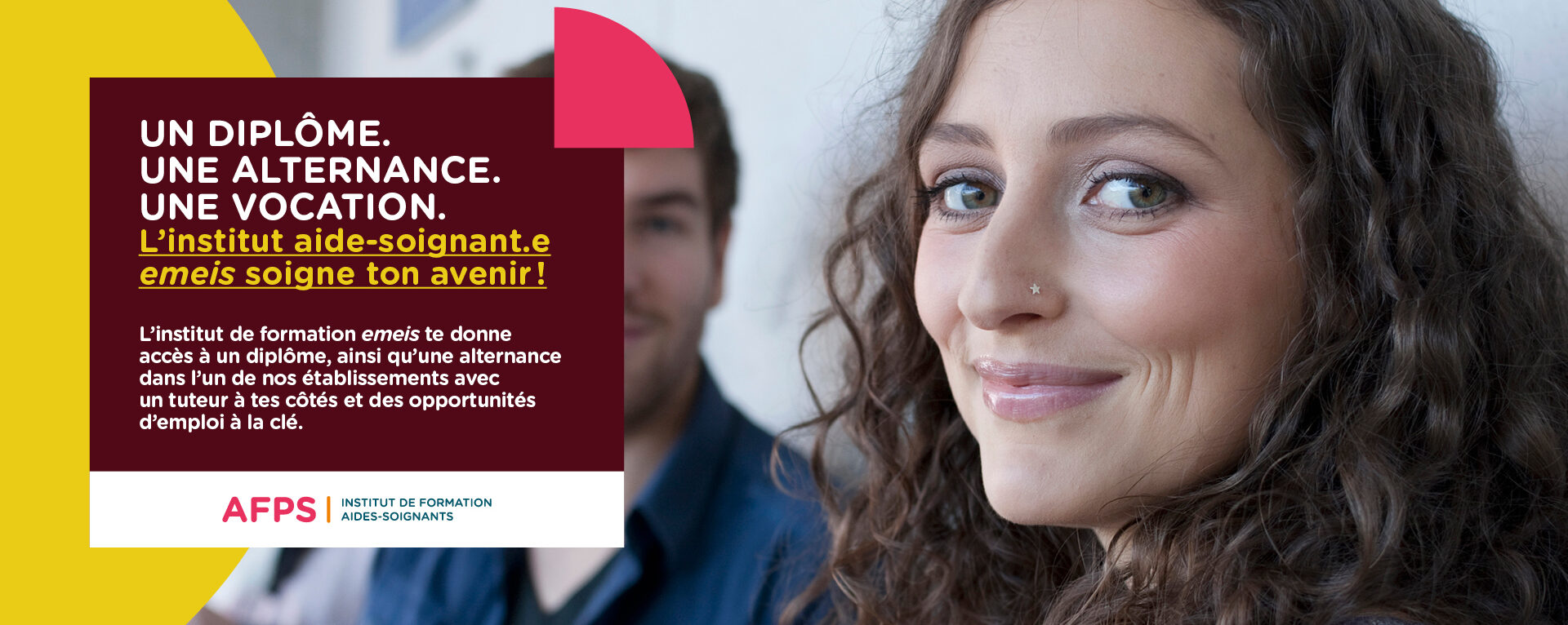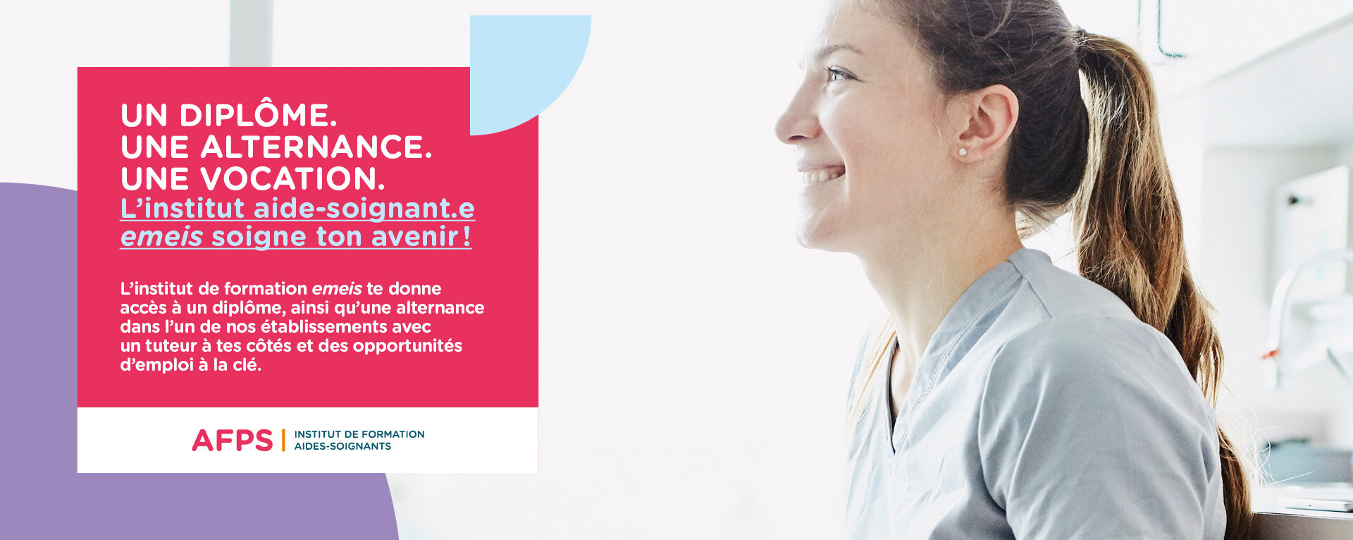 L’institut de formation emeis vous donne accès au diplôme d'état aide-soignant, ainsi qu’une alternance dans l’un de nos établissements (maisons de retraite et cliniques) avec un tuteur à vos côtés et des opportunités d’emploi à la clé.