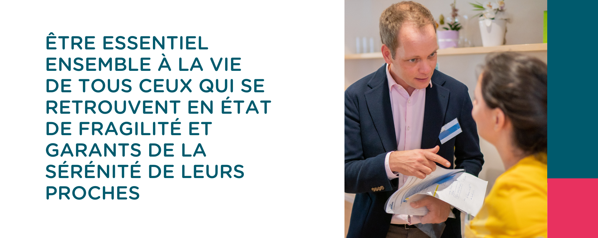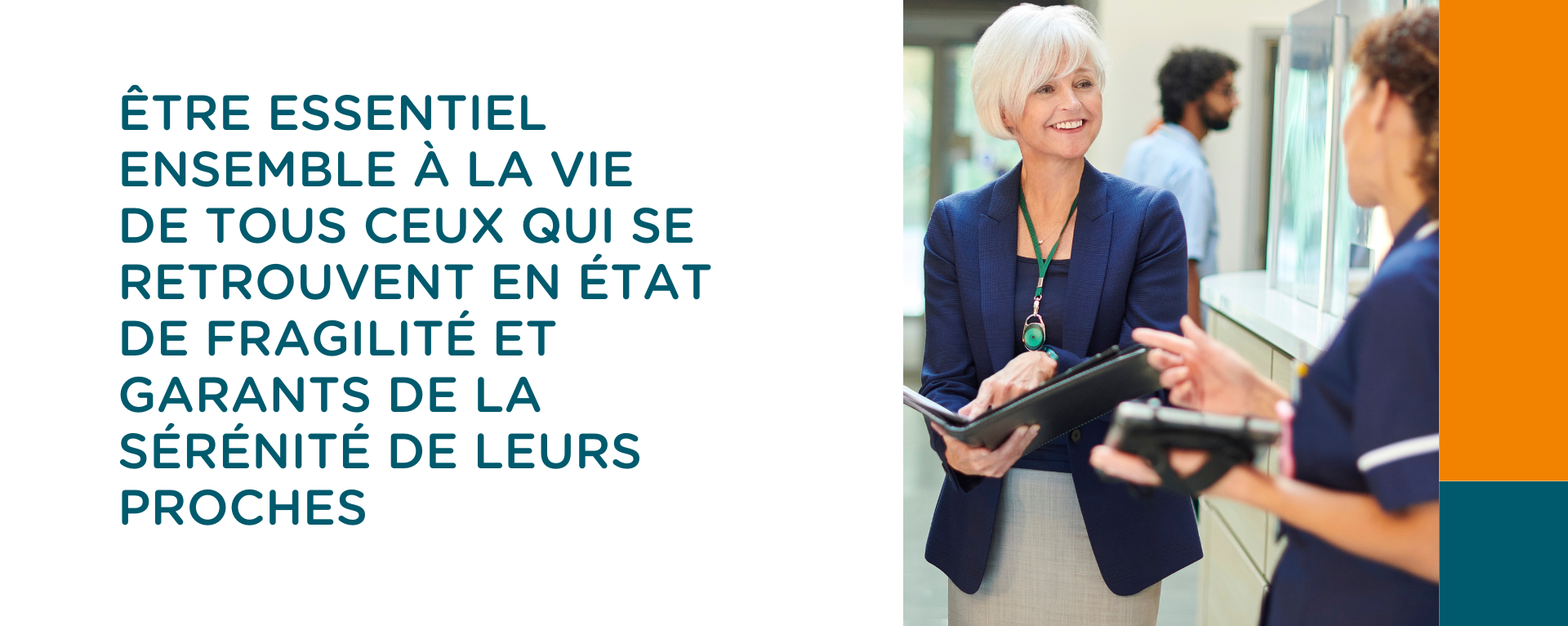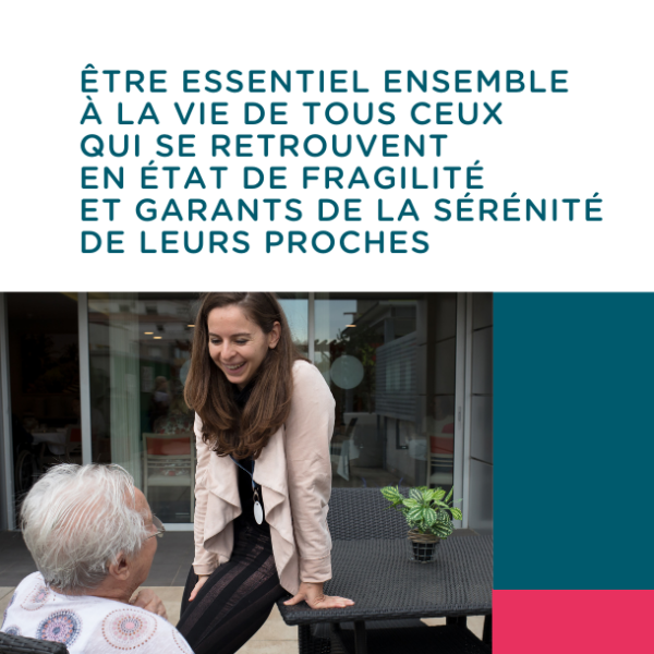 Nous nous engageons et nous mobilisons notre force d’innovation pour aider celles et ceux qui se retrouvent un jour en état de fragilité, à retrouver ou préserver leurs forces et leurs capacités, à cultiver leur goût pour la vie et à donner confiance et sérénité à leurs proches.